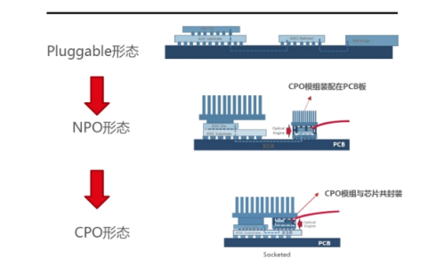 共封装光学(Co-packaged Optics,缩写为CPO)是一种新型的光学封装技术,旨在将光学元件直接封装在芯片内部,可以通过更短的光学路径和更紧密的光学耦合实现更高效的光通信,同时也可以减少光学连接和对准的复杂性,从而实现更高密度的光电集成和更高性能的光通信系统。