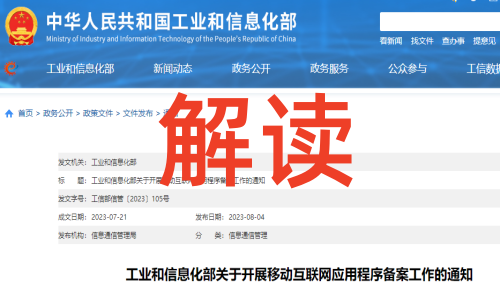 近日,工业和信息化部印发了《工业和信息化部关于开展移动互联网应用程序备案工作的通知》(以下简称《通知》)。现就《通知》有关内容解读如下: -