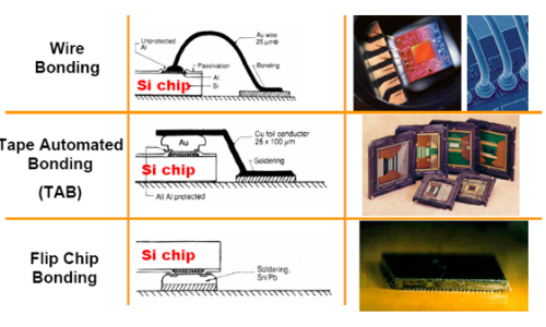 倒装芯片技术是通过芯片上的凸点直接将元器件朝下互连到基板、载体或者电路板上。引线键合的连接方式是将芯片的正面朝上,通过引线(通常是金线)将芯片与线路板连接。 引线键合、载带连接、倒装连接各有特点。其中倒装连接以结构紧凑,可靠性高在封装行业应用越来越广泛。 -