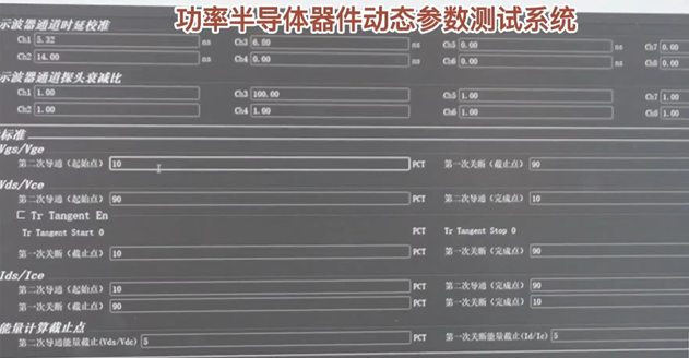 针对上述问题,DPT1000A提供了配套的测试软件,在测试软件程序中,只需要在工况栏中相应位置填写数值,即可通过软件设置得到需要的测试条件。并且包括示波器通道的校准参数、衰减比,及每一项和时间相关的参数,比如上升沿是从10%到90%,还是从20%到80%,都可以通过软件进行设置。